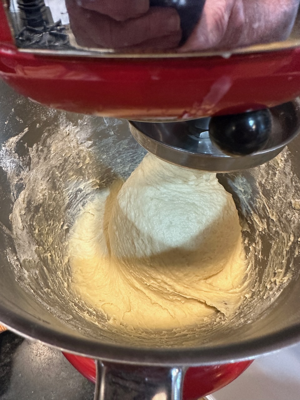 - Combine all of the dough ingredients in the bowl of a stand mixer. Using the paddle attachment, mix until the ingredients are well combined.