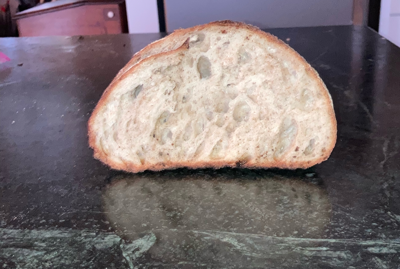 This is our go-to Reinhart-style bread, and I give him all of the credit for suggesting the ingenious trick of adding whole wheat flour to the starter. My addition was to hybridize it with the Robertson approach to proofing, shaping and baking. I think you will be more than pleased with the results.