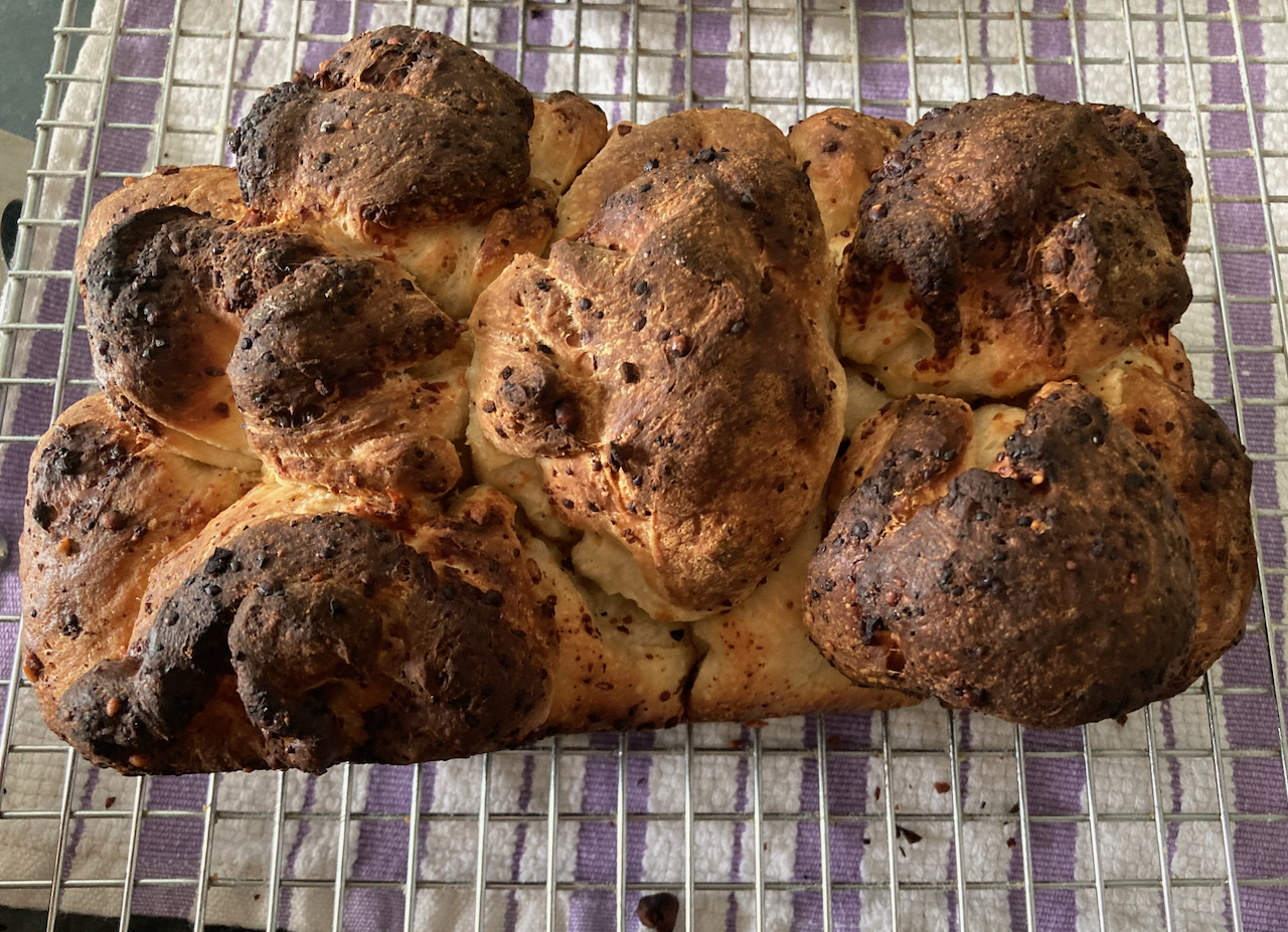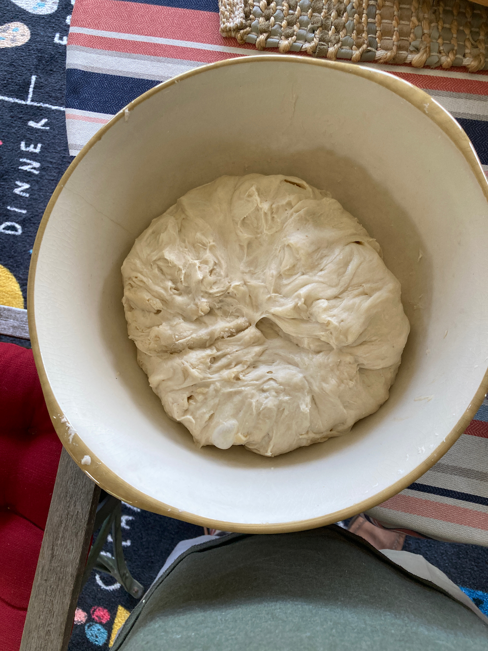 I only did the above once. When I tried to repeat it, for whatever reason the dough behaved more normally (formed into a ball that could be folded as usual. I looked for the original recipe to see if I had transcribed it correctly but couldn’t find it. I did, however, come up with this one from Little Spoon Farms, which is quite similar to what I did on my second try.