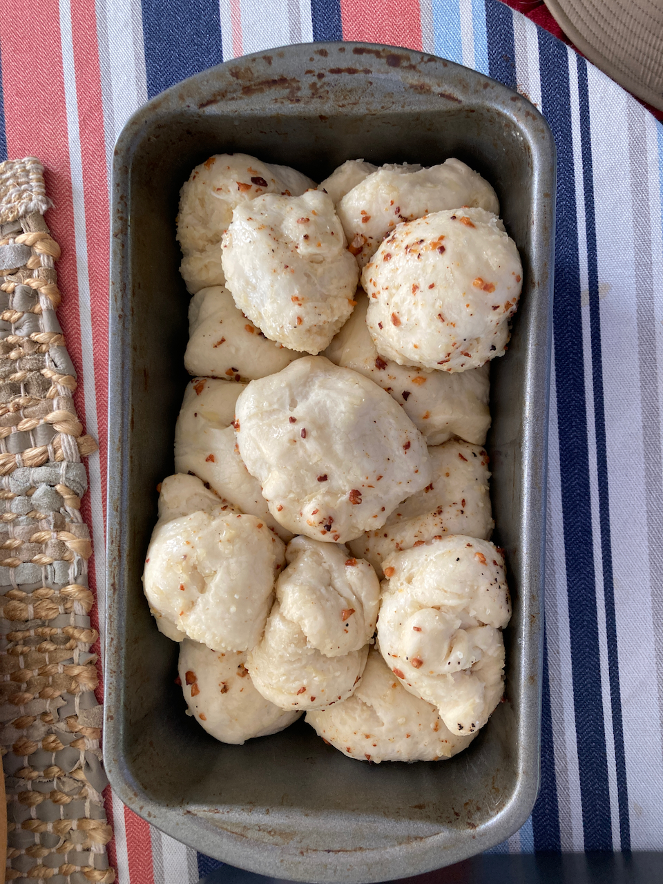 The recipe below is actually double the size of the original, since I use it mostly for making parmesan bubble loaf. If you are making rolls for a small family dinner, you may want to reduce everything by a half.